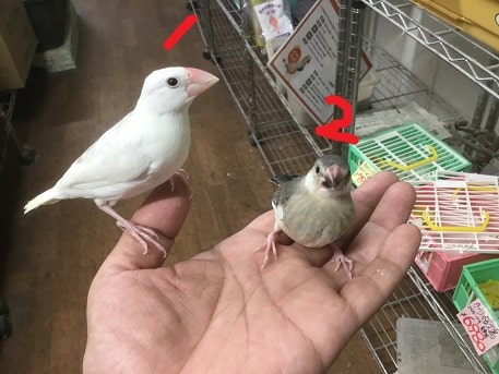 1番白文鳥・2番桜文鳥